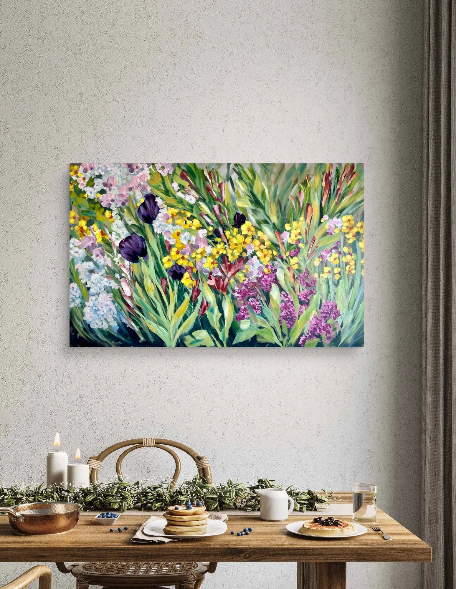 This piece was born from a feeling rather than a plan. I didn’t try to control it too much — I allowed the flowers to emerge naturally, layer by layer, as if they were growing directly on the canvas. Soft yet expressive, delicate yet full of life, this painting reflects the beauty of fleeting moments — the kind we often overlook, but feel deeply.
